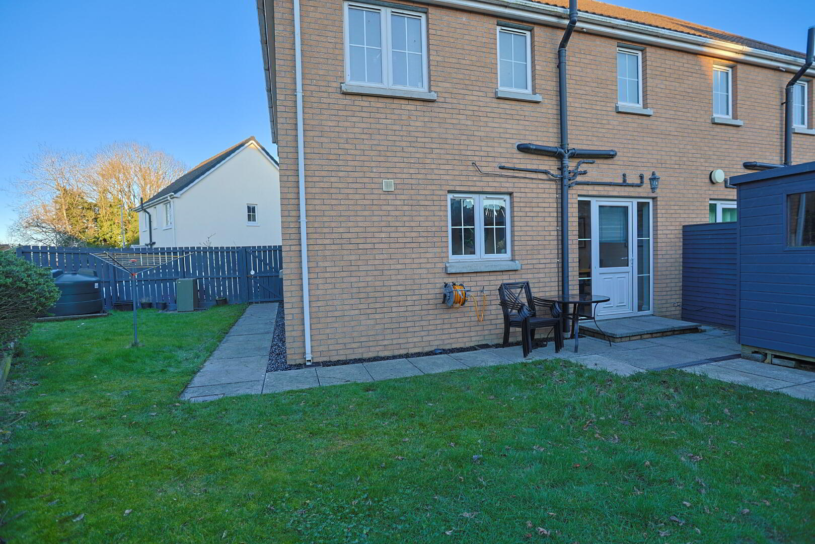 Landscape back garden that wraps around to the side of the house