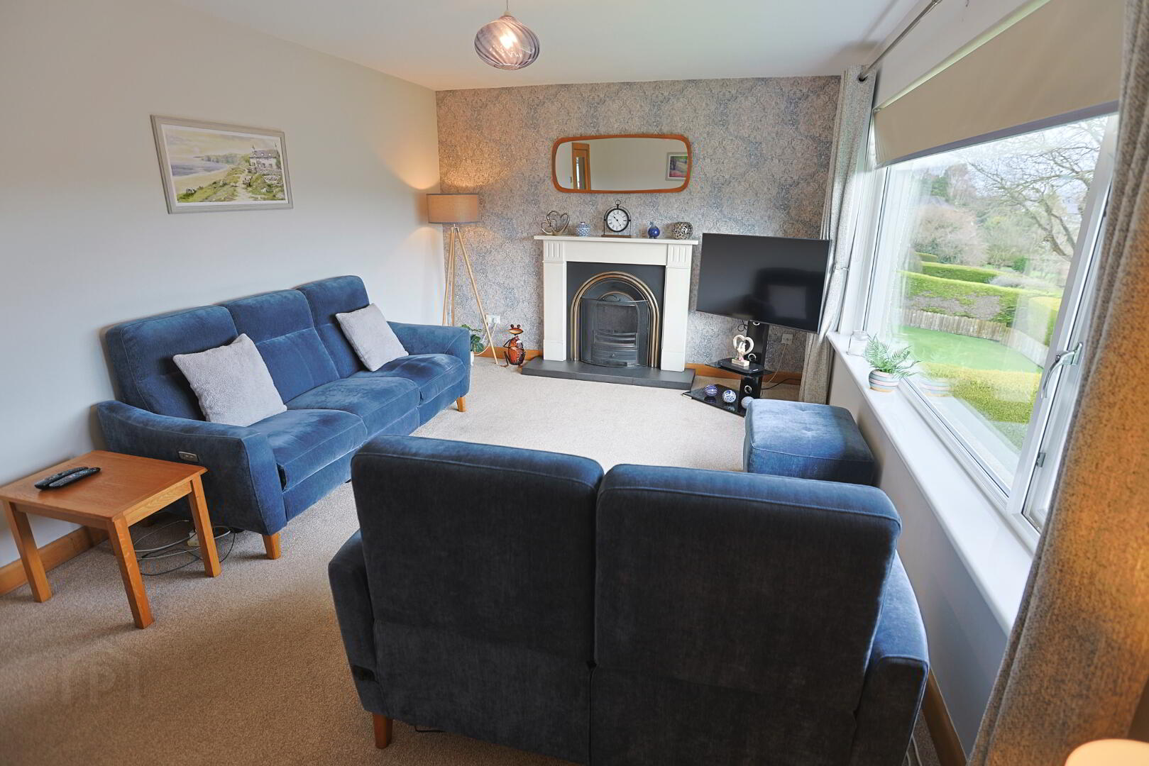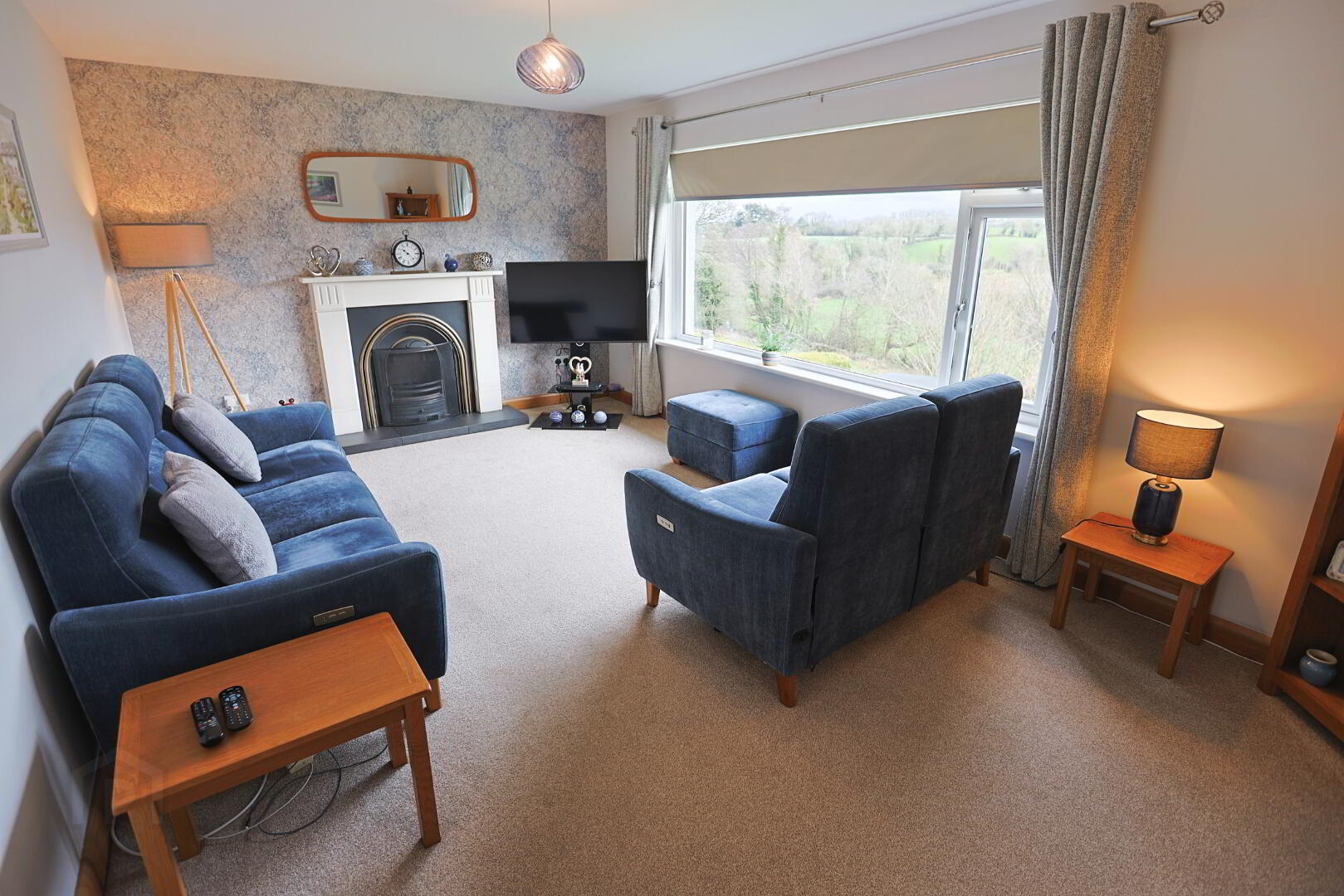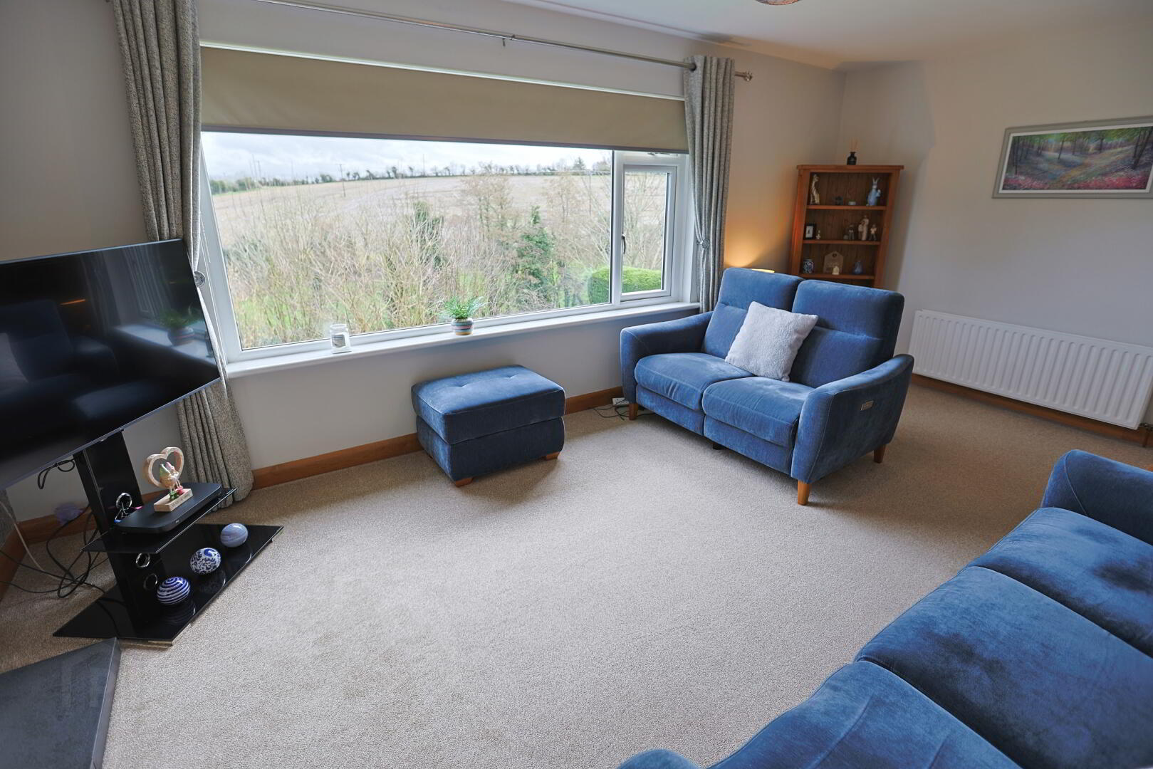 Large window offering stunning views over the garden and open countryside