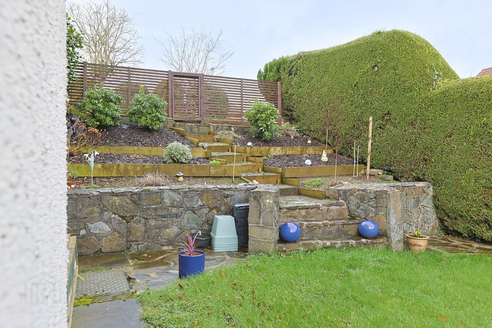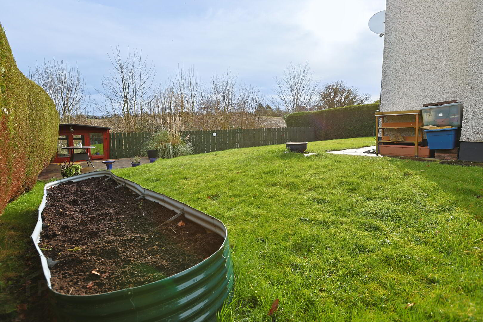 Beautifully presented gardens laid in lawn with mature planting and fabulous open countryside views. Tarmac driveway and attached garage.