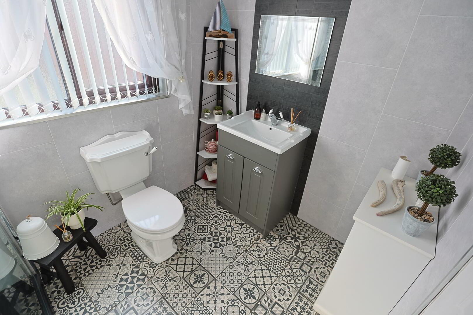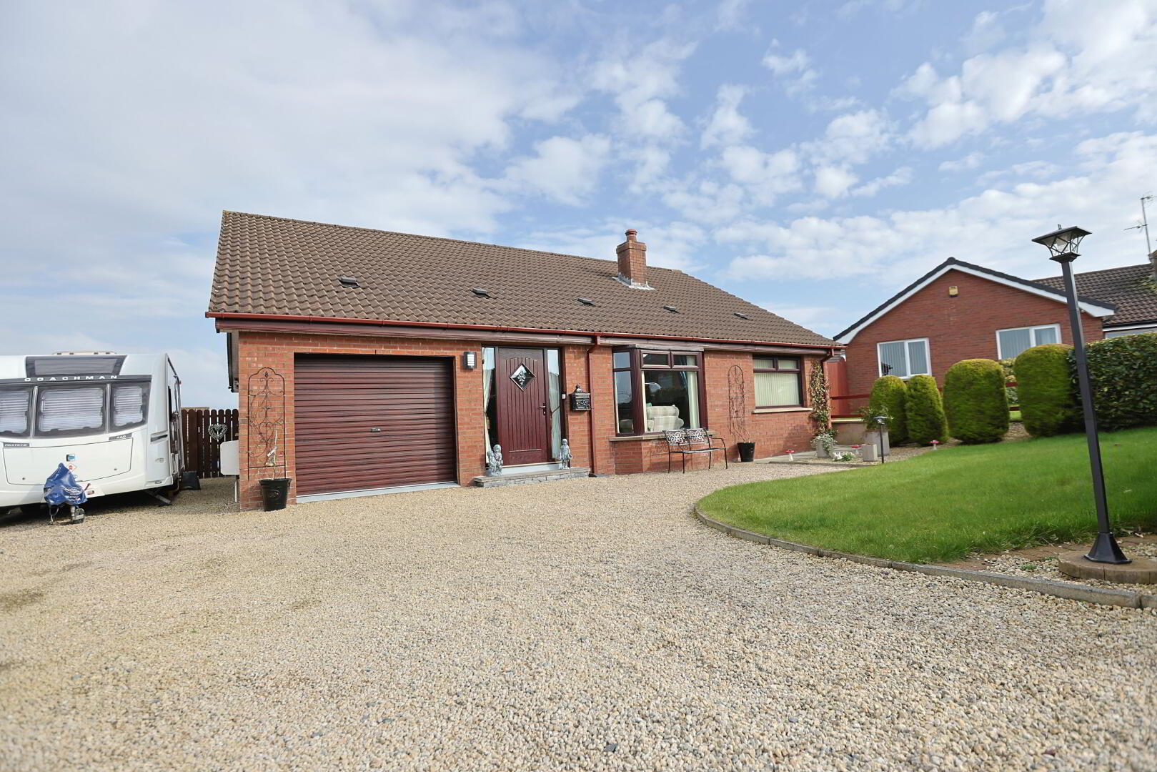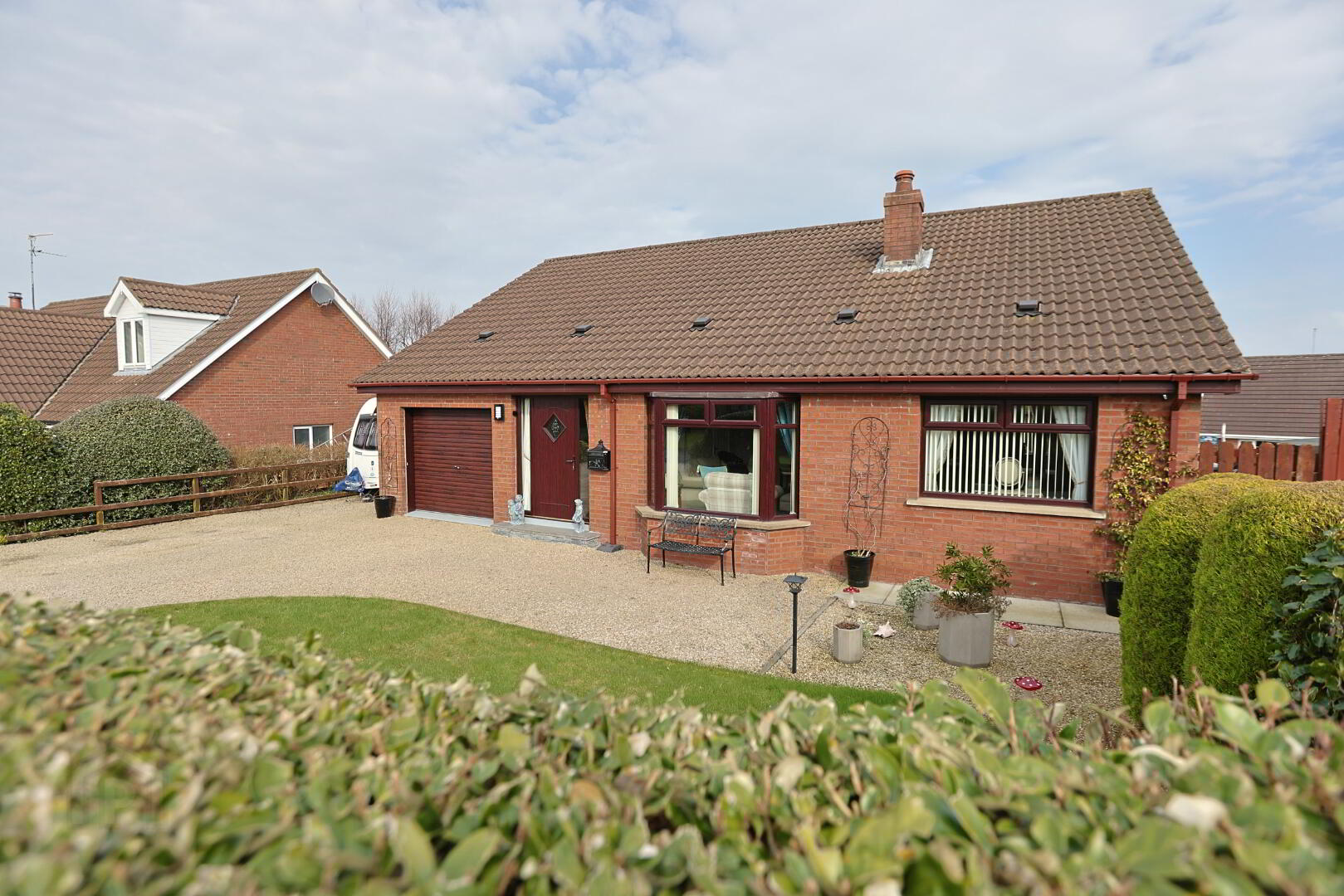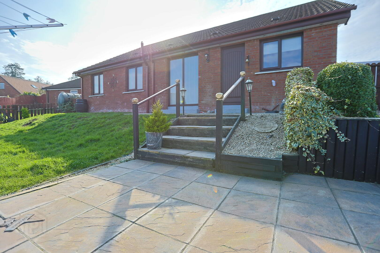 Rear garden laid in lawn, patio and pebbled areas for low maintenance