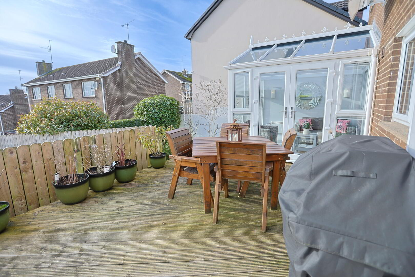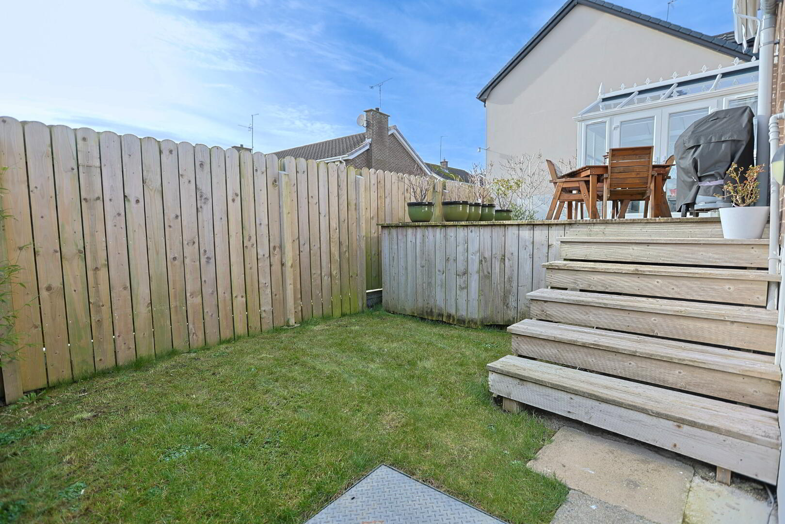 rear garden laid in decking - awning included