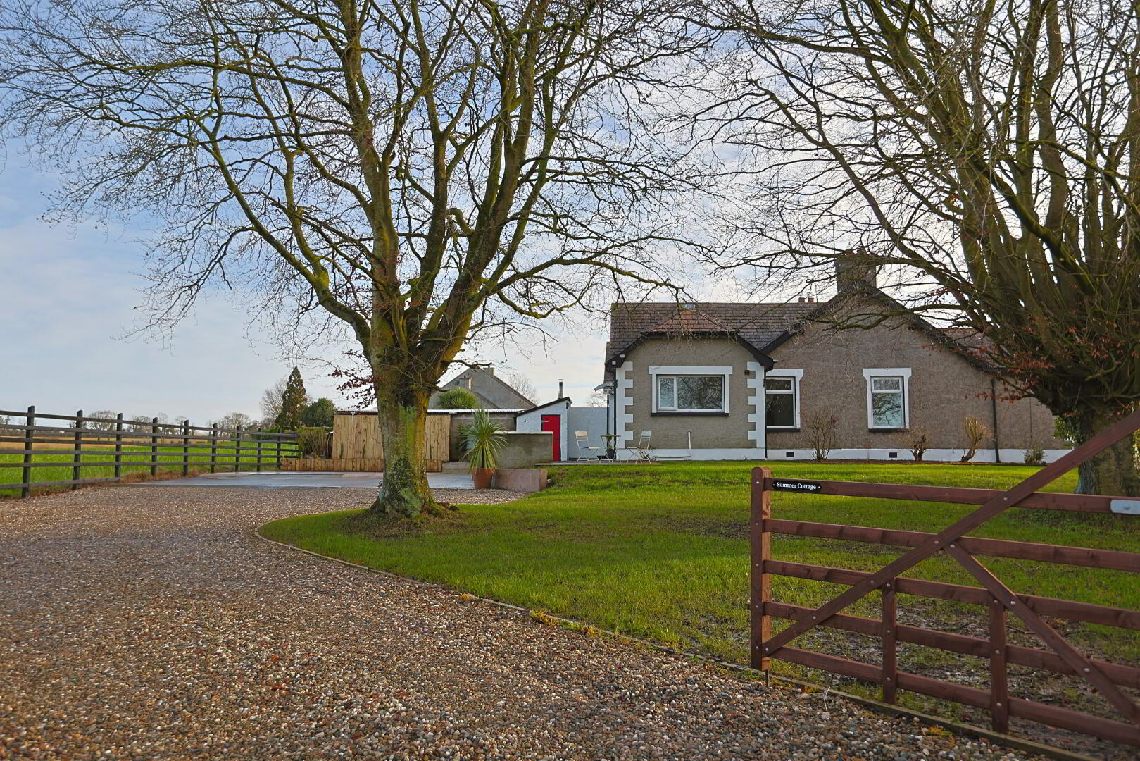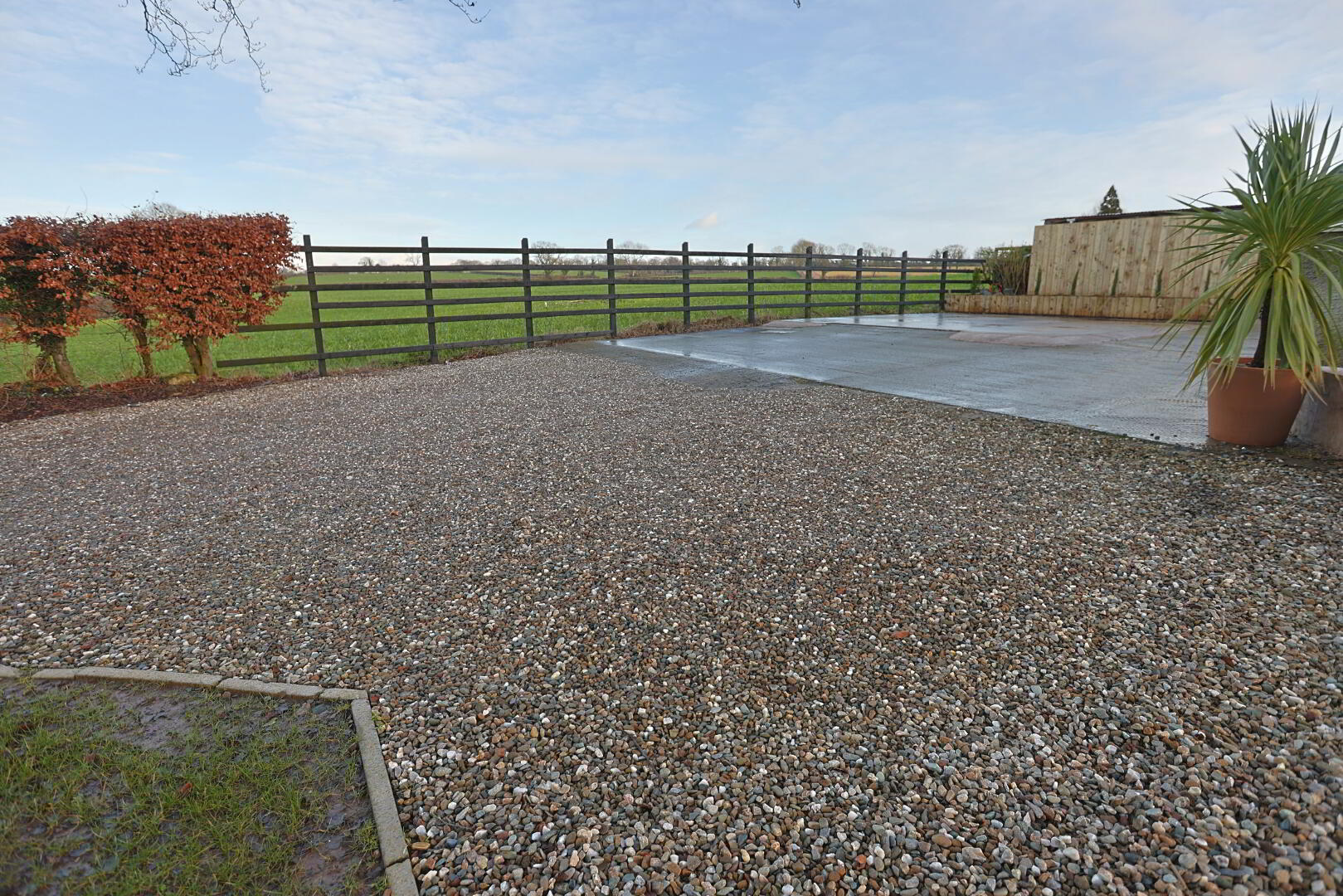 pebble driveway with plenty of space for parking