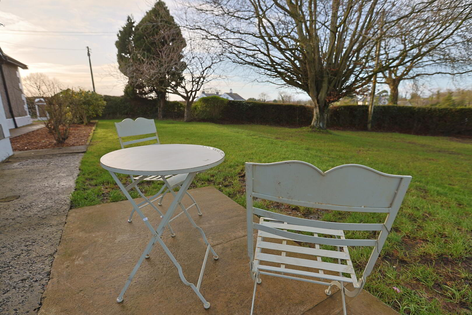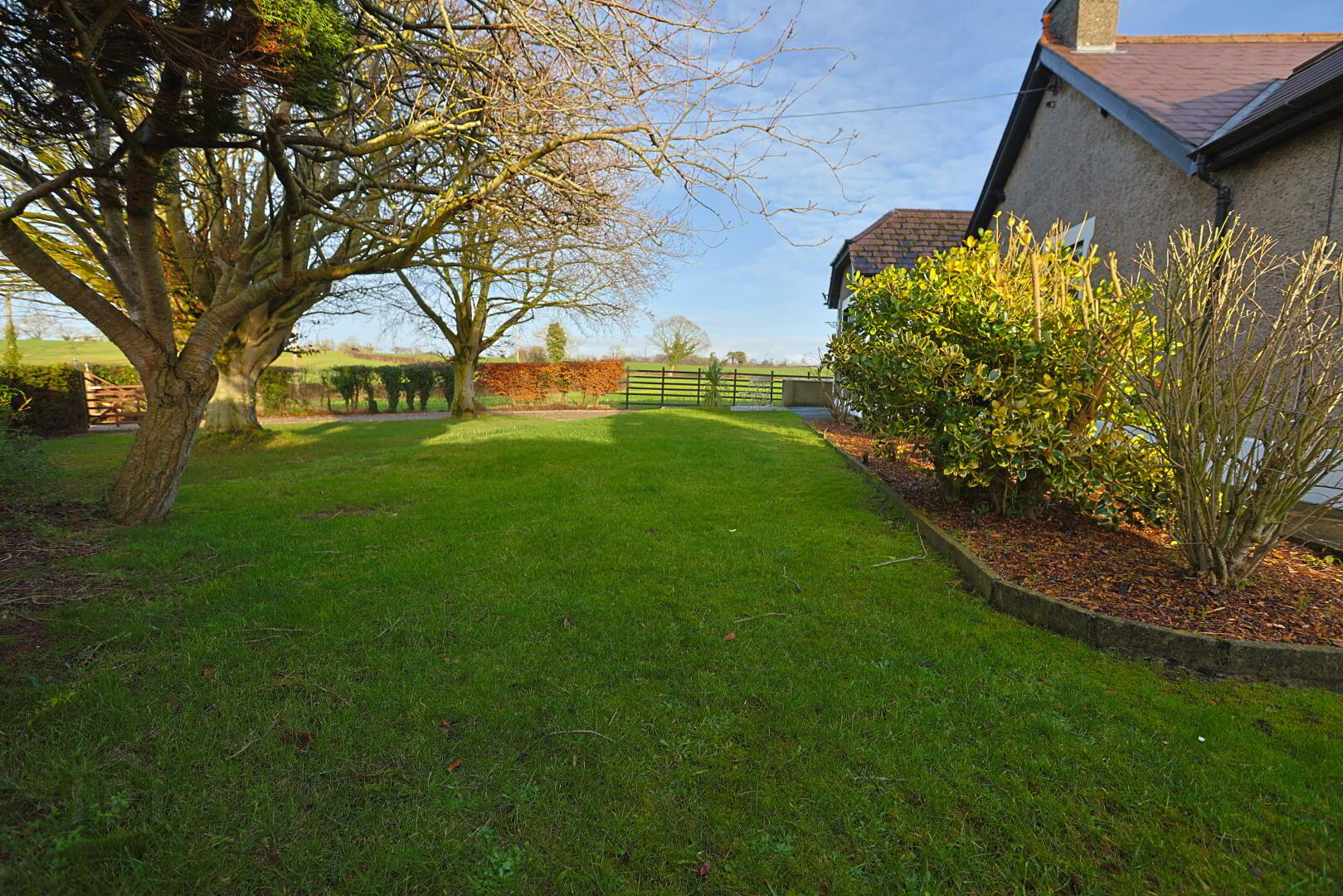 beautiful country garden laid mostly in lawn with mature trees and shrubs