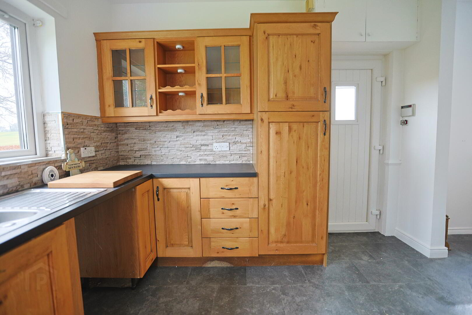 one and a half bowl sink unit with mixer taps