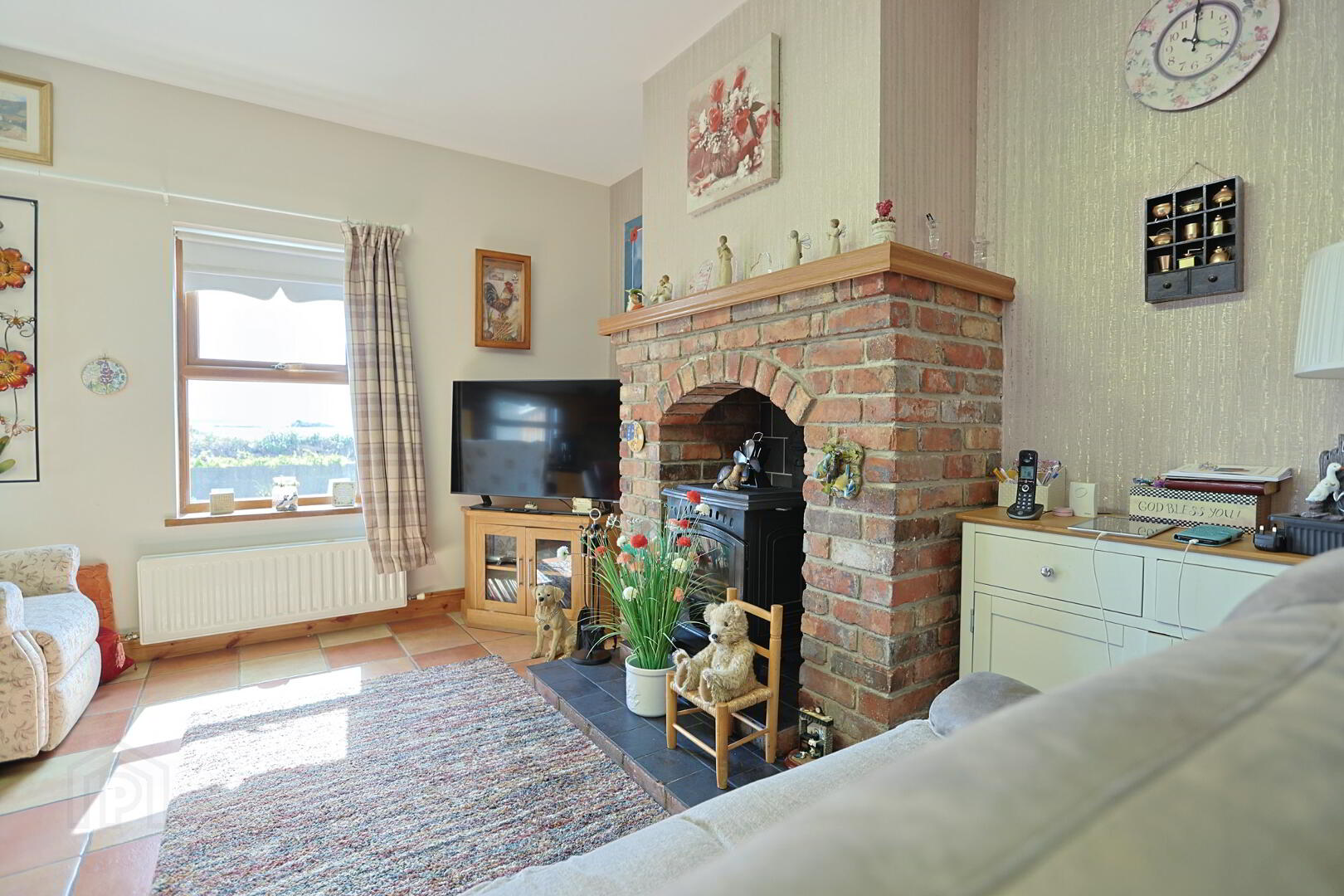 country cottage style fireplace with stove
