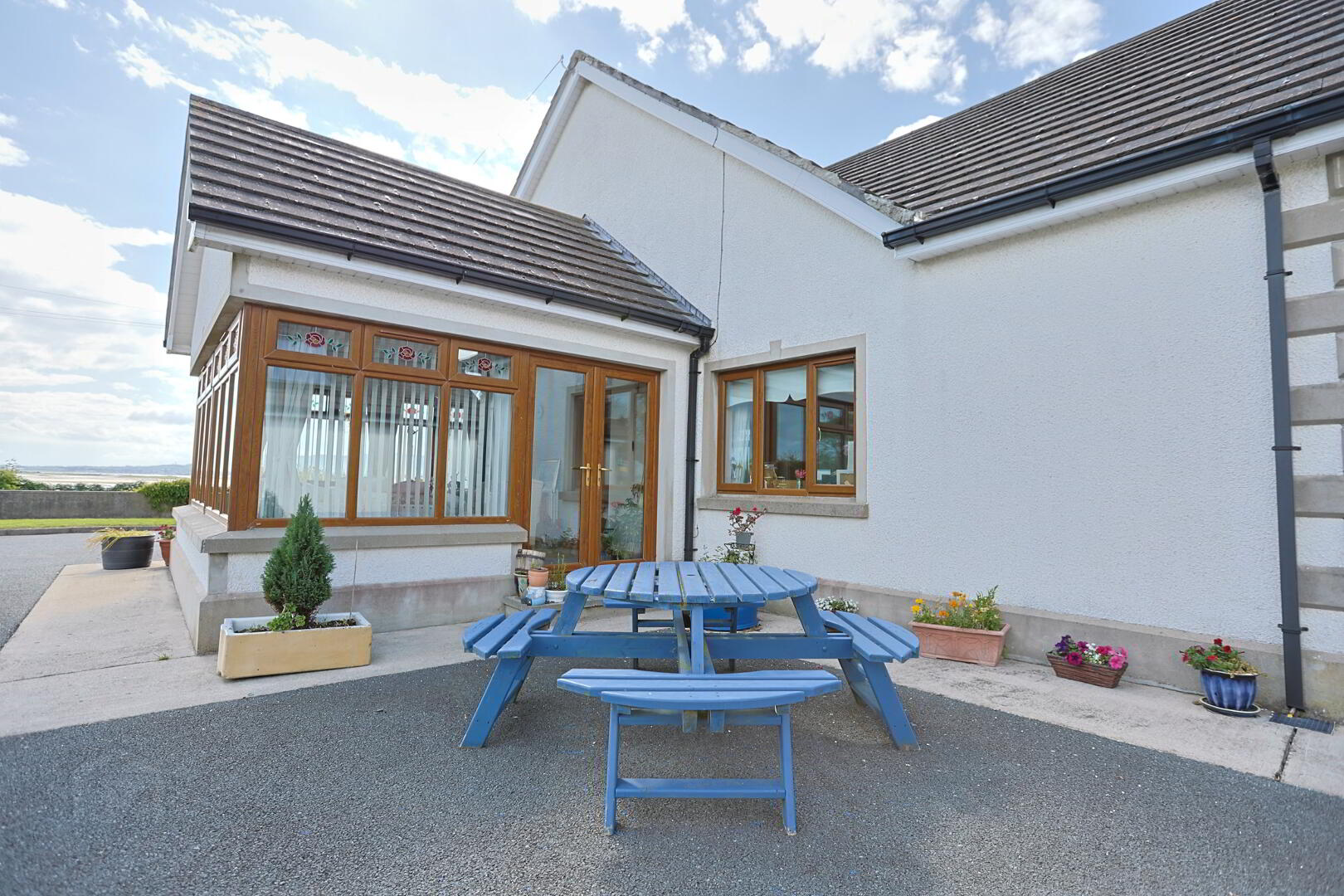 PVC and glazed front door with PVC and glazed side panel