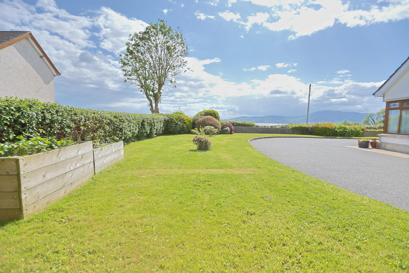 beautifully presented gardens laid in lawns with mature shrubs and trees
