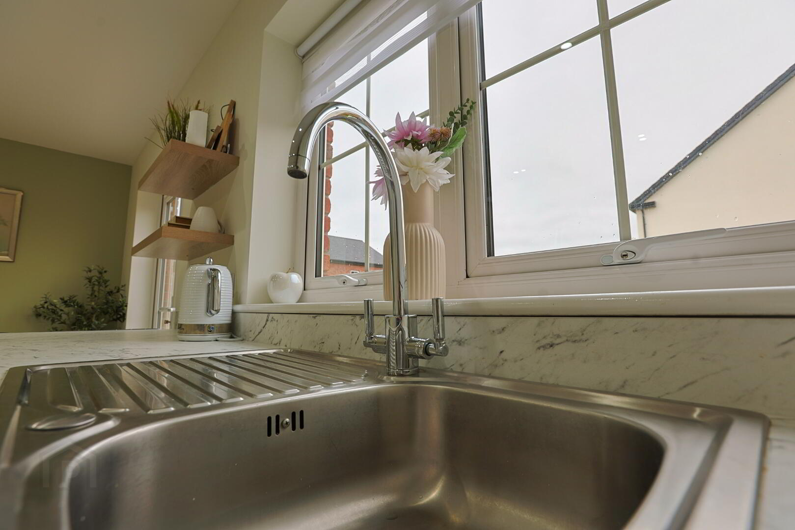 Single drainer sink unit with mixer taps