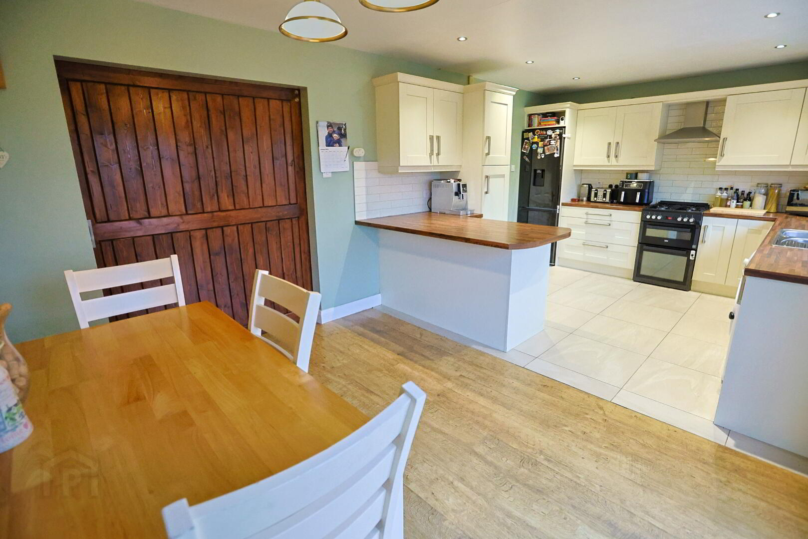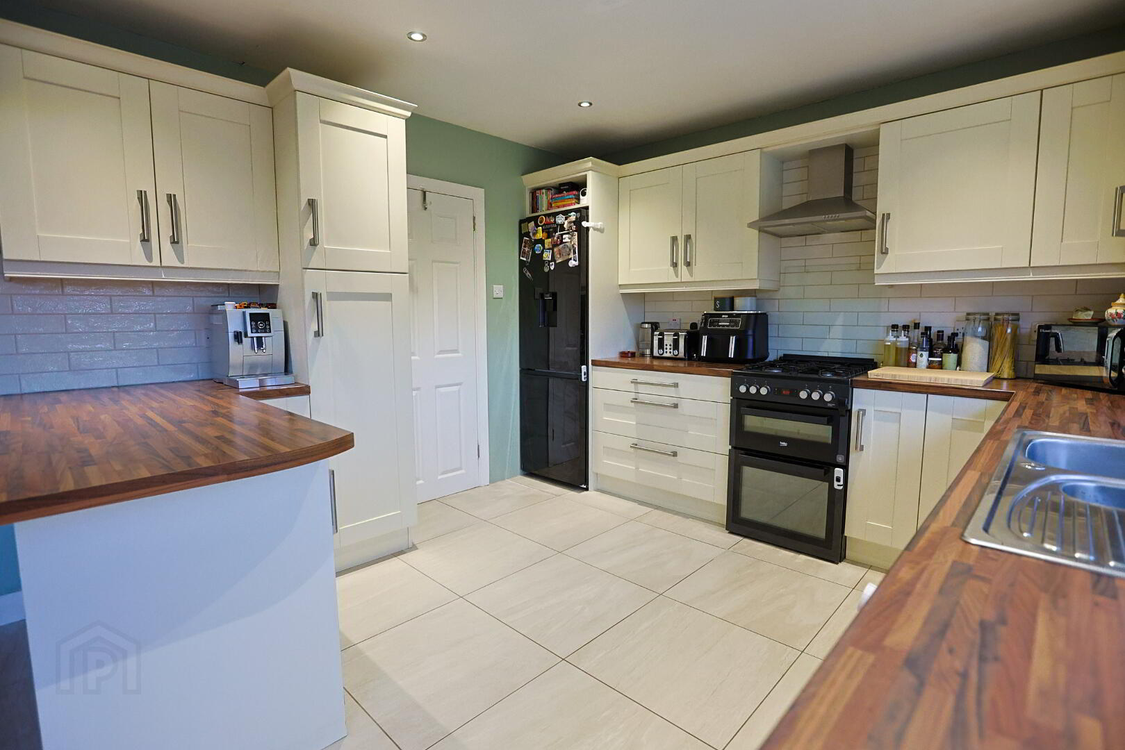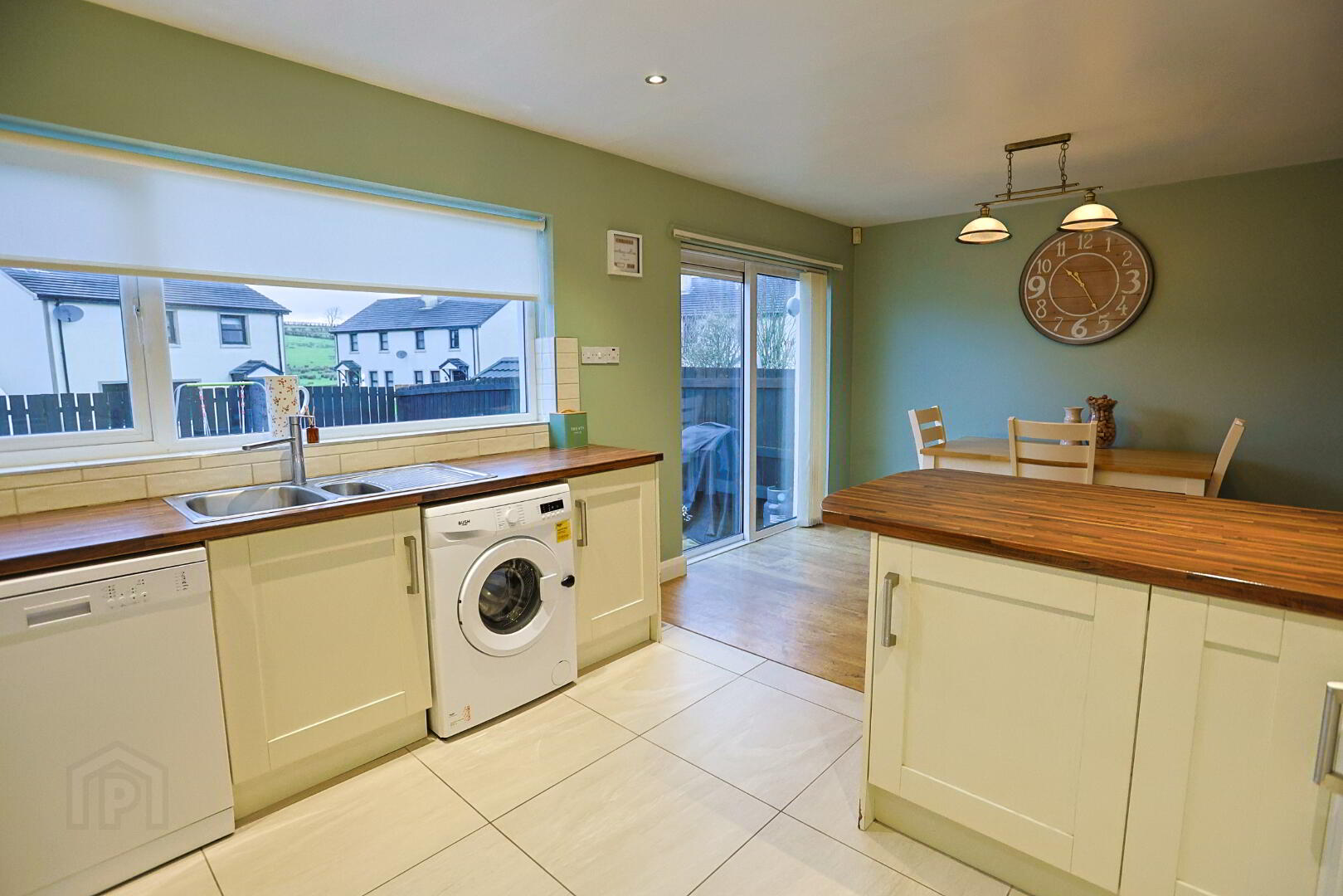 Fully tiled floor in kitchen area