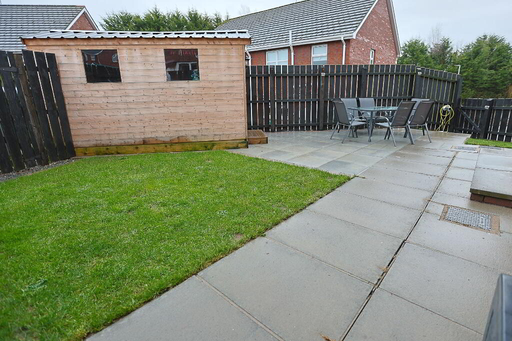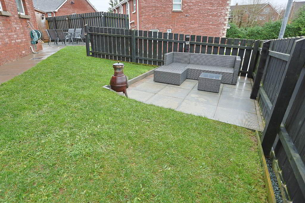 Front: Lawn area with drivewayRear: Patio area with low-maintenance landscaped garden, recently completed