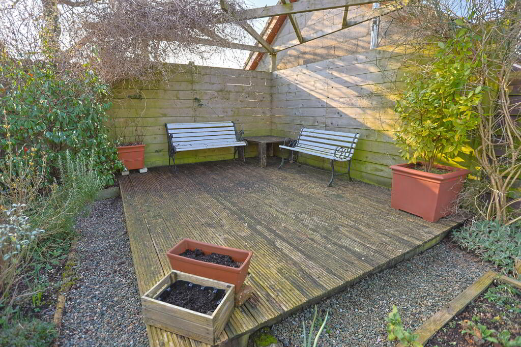 private rear garden laid in lawn and decking