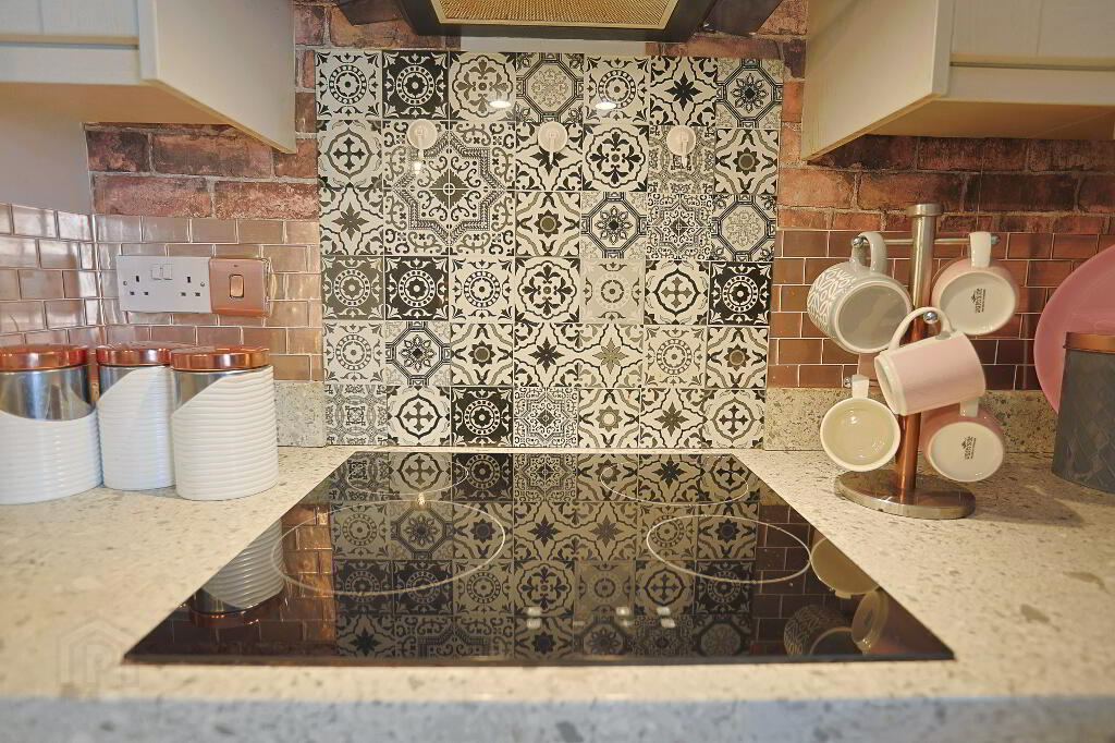 Feature wood panelling on wall in kitchen area